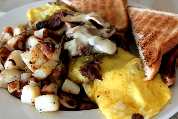 All omelets are made with 3 farm fresh eggs and served with home fries, hash brown or fruit and toast.